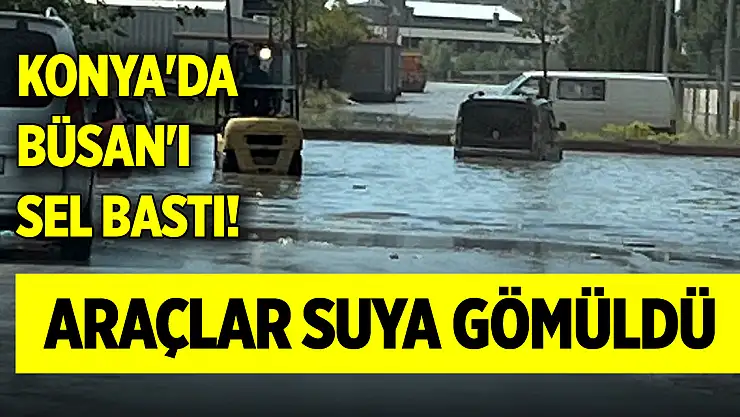 Konya'da bugün öğleden sonra ani bastıran yağmur sonrası Büsan Sanayi Sitesinde araçlar mahsur kaldı.