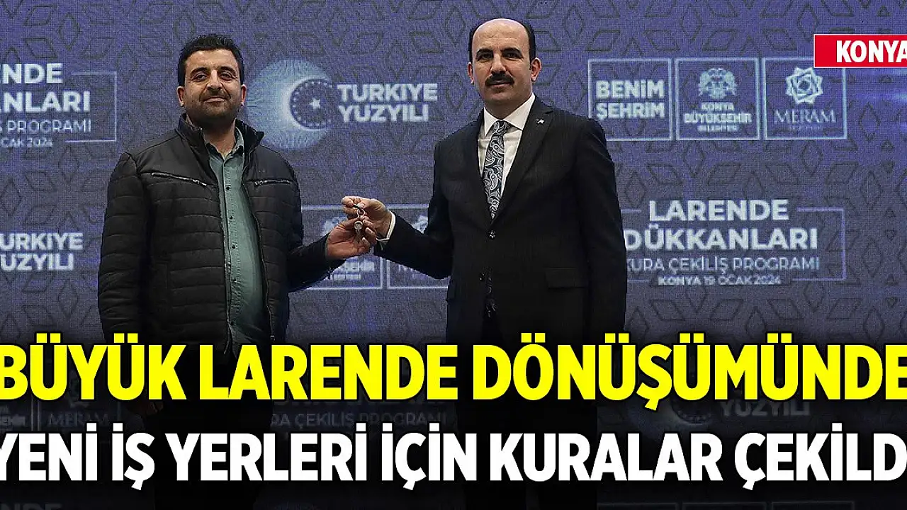 Türkiye'de yürütülen en büyük ihya projelerinden Darü'l-Mülk Projesi kapsamında Konya Büyükşehir Belediyesi ve Meram Belediyesi iş birliğiyle hayata geçirilen 'Büyük Larende Dönüşümü'nde, tamamlanan yeni iş yerleri için kuralar çekildi.