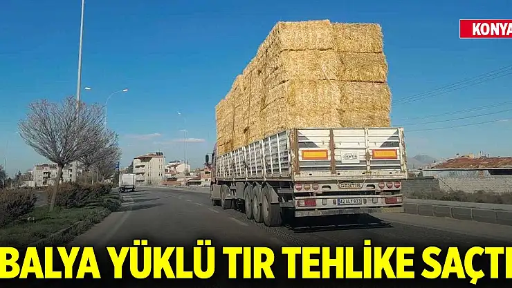 Konya'da çadırsız balya yüklenen tırın tehlikeli yolculuğu diğer yolcuların tepkisini çekti.