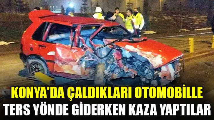 Konya'da çaldıkları otomobille ters yönde giderken kaza yaptılar