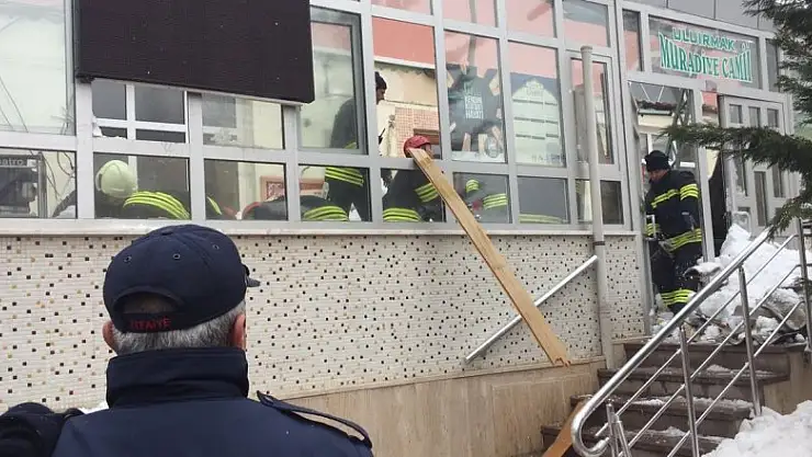 Edinilen bilgiye göre, Turgut Reis Mahallesi'ndeki Uluırmak Muradiye Camisi'nde ayakkabıların konulduğu giriş bölümündeki laminant kaplı çatı, kar birikintileri nedeniyle çöktü.