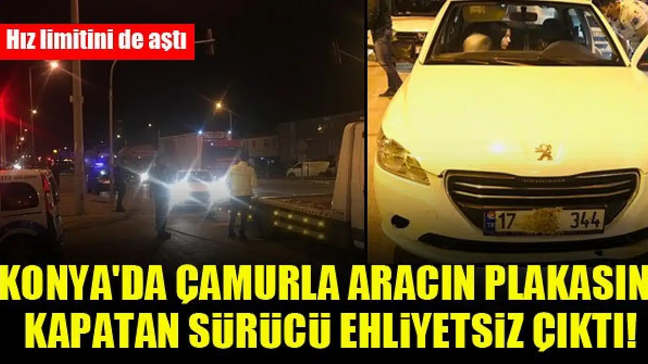 Konya'nın Kulu ilçesinde aracının plakasını çamurla kapatarak seyahat eden sürücünün ehliyetsiz olduğu tespit edildi.