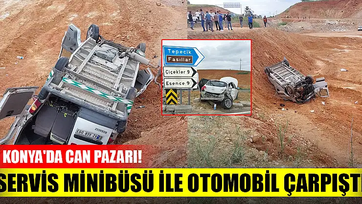Konya'da can pazarı! Servis minibüsü ile otomobil çarpıştı