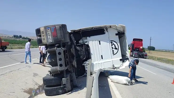 Kaza, Konya-Adana karayolu Ereğli ilçesi Acıpınar mevkiinde meydana geldi. İddiaya göre, D.B. idaresindeki 42 ADP 433 plakalı çekici, tekerleğinin kilitlenmesi sonucu kontrolden çıkarak refüje devrildi. Kazada sürücü ile birlikte araçta bulunan toplam 5 kişi yaralandı. Kaza ihbarı üzerine olay yerine sağlık ve polis ekibi sevk edildi. Yaralılar yapılan ilk müdahalenin ardından ambulansla Ereğli Devlet Hastanesine kaldırılarak tedavi altına alındı.