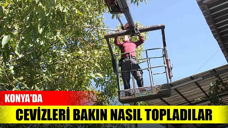 Konya'nın ceviz üretiminde ön plana çıkan ilçelerinden Beyşehir'de, yaşanan ağaçtan düşme vakalarının önüne geçebilmek için vinç yardımıyla ceviz hasadı yapılıyor.