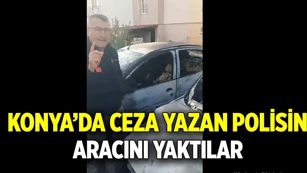 Konya'da ceza yazan polisin aracını yaktılar