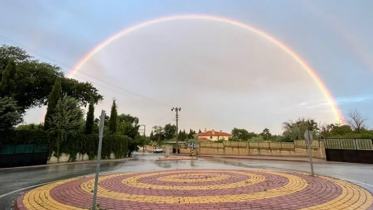 Çok sık rastlanılmayan doğa olaylarından olan gökkuşağı Konya'nın Selçuklu ilçesinde yağmur sonrasında görüldü. Çift gökkuşağını görenler bu anı kayıt altına aldı. Dakikalar süren görsel şölen bir süre sonra kayboldu.