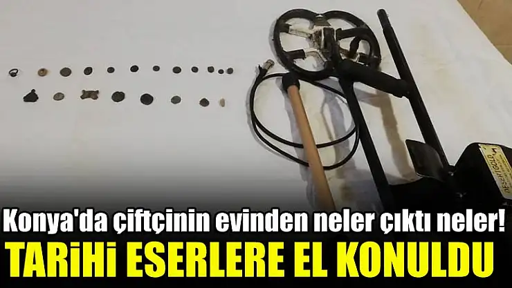 Konya'da bir çiftçinin evinde yapılan aramada tarihi eser ele geçirildi.