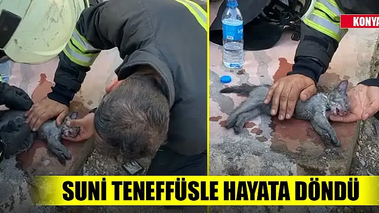 Konya İtfaiyesi, yangında mahsur kalan yavru kedinin uygulanan suni teneffüsle hayata döndürülmesini içeren görüntüleri paylaştı. Görüntülerde, nefes almayan yavru kediye itfaiye erinin suni teneffüs uygulaması ve yüzünü su ile yıkaması yer alıyor. Müdahaleden sonra kedinin nefes almaya başladığı görülüyor.