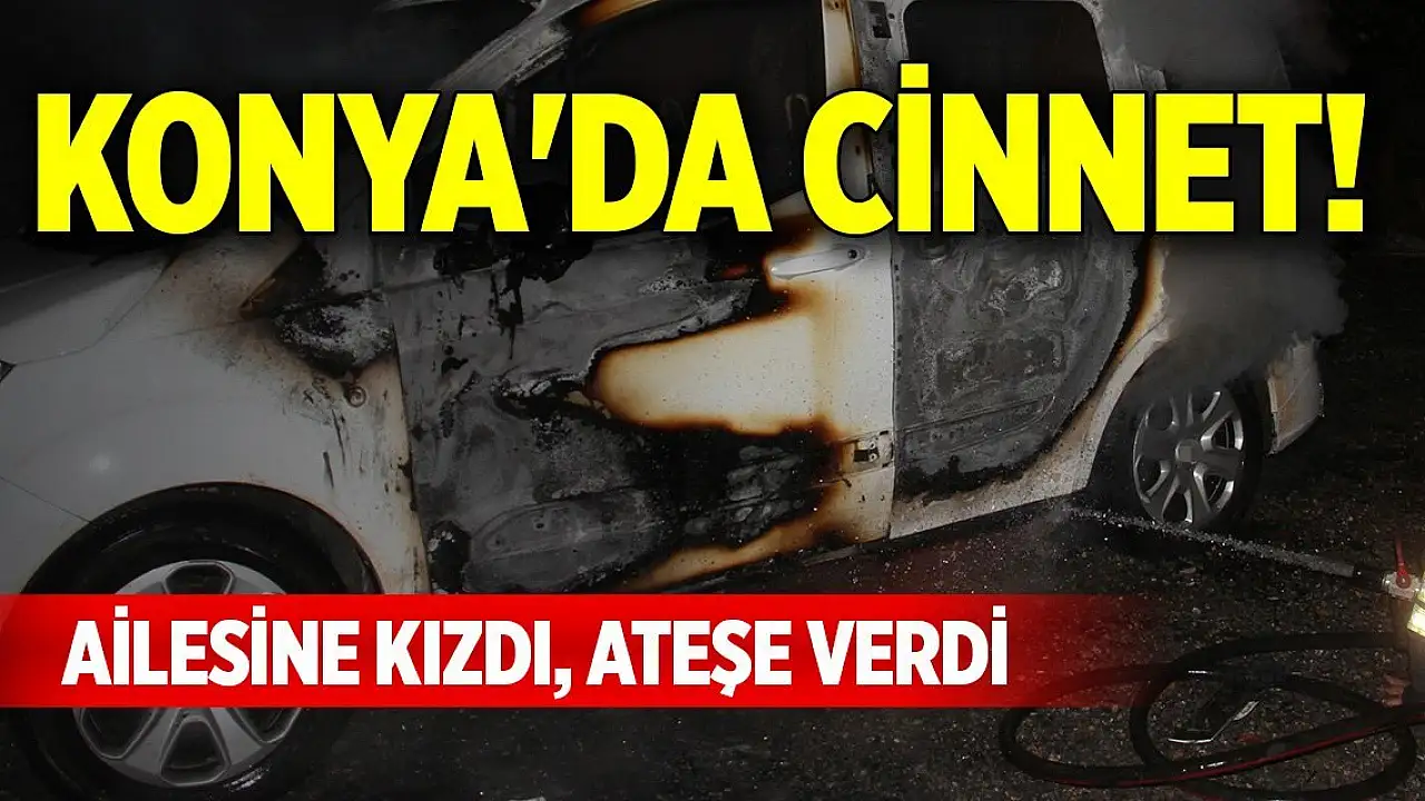 Konya'da iddiaya göre ailesiyle tartışan kişi, park halindeki aracı ateşe verdi.