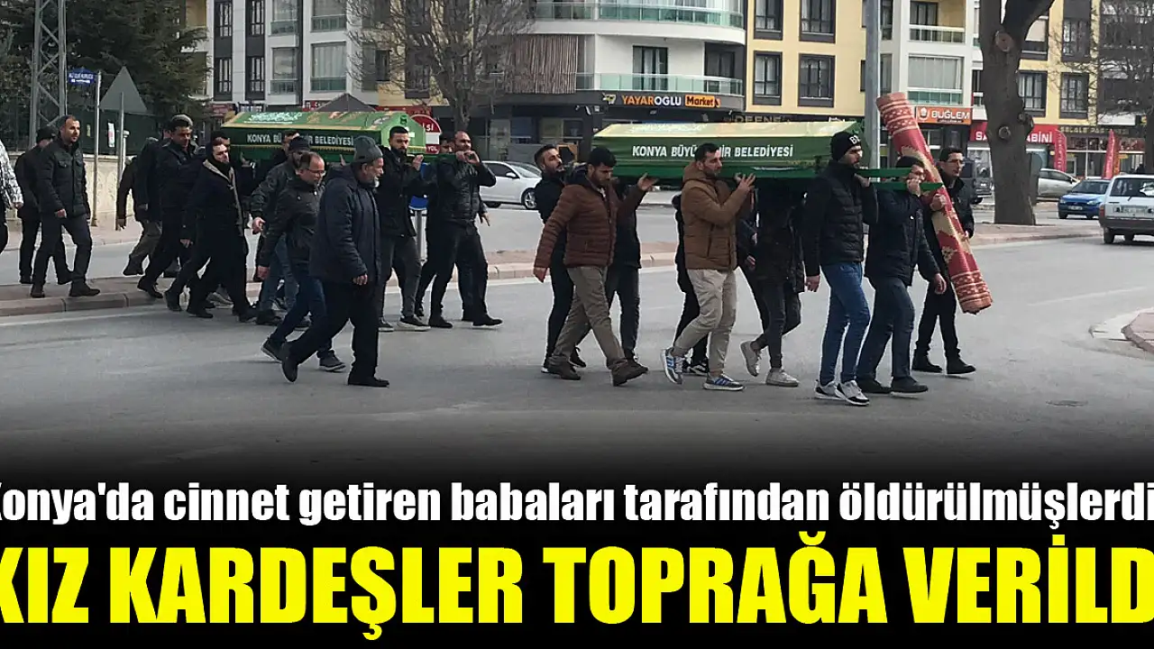 Konya'da cinnet getiren babaları tarafından öldürülmüşlerdi...Kız kardeşler toprağa verildi