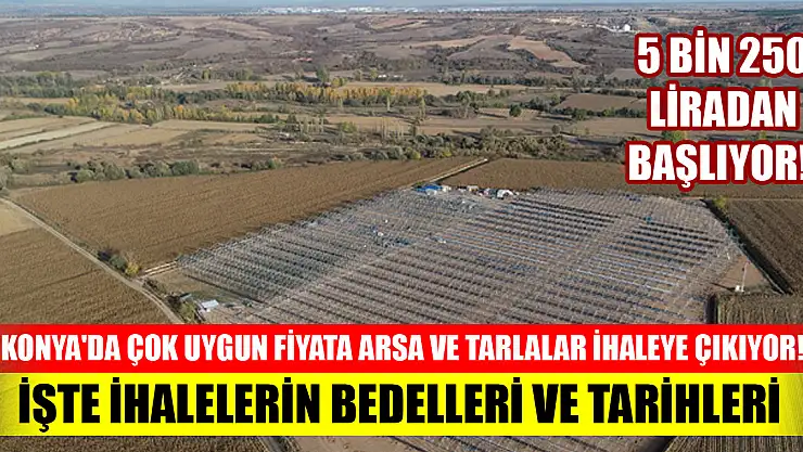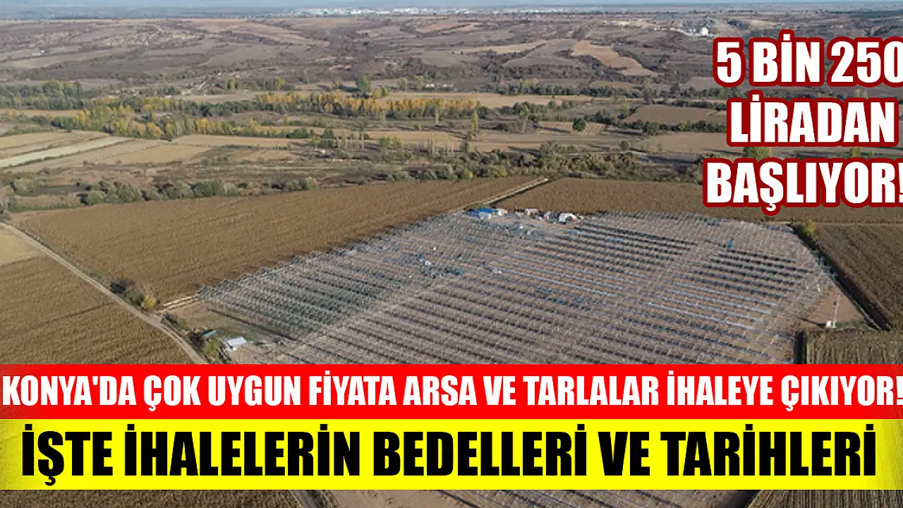 - Konya'da çok uygun fiyata arsa ve tarlalar ihaleye çıkıyor! 5 bin 250 liradan başlıyor! İşte ihalelerin bedelleri ve tarihleri
