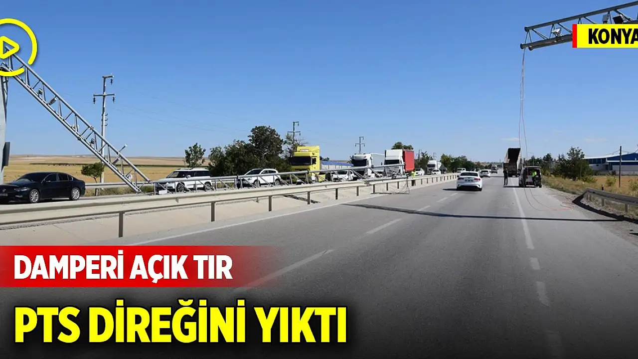 Konya'nın Kulu ilçesinde damperi açık bir şekilde seyreden tır yol üstündeki Plaka Tanıma Sistemi (PTS) direğine çarparak yıktı.