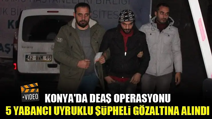 Konya'da İstihbarat ve Terörle Mücadele ekiplerince düzenlenen operasyonda, daha önceden terör örgütü DEAŞ üyesi olduğu belirlenen yabancı uyruklu 5 şüpheli yakalanarak gözaltına alındı.