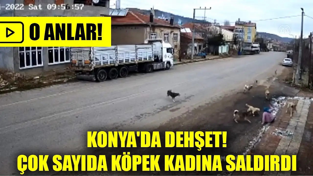 Konya'nın Doğanhisar ilçesinde bir kadının sahipsiz köpeklerin saldırısına uğradığı anlar güvenlik kamerasına yansıdı.