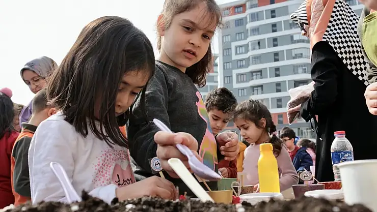 Okulun özel öğrencileri, deprem bölgesinde görev yaptıktan sonra kente dönen öğretmenler ve depremzede öğrenciler, Selçuklu Belediyesi Şehit Erkan Kurşun İlkokulu'nda düzenlenen programda tohumları toprakla buluşturdu.
