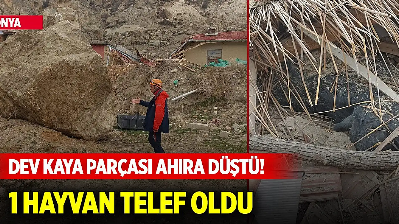 Konya'da dev kaya parçası ahıra düştü! 1 hayvan telef oldu
