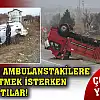 Kamyon sürücüsünün fren yapmasıyla kayan kamyon da ambulansın yaklaşık 100 metre ilerisinde şarampole devrildi. Kazada her iki aracın sürücüsü ile ambulansta bulunan sağlık görevlileri B.B. ve A.G. ile kamyonda yolcu olarak bulunan E.G. ve B.S. yaralandı.
