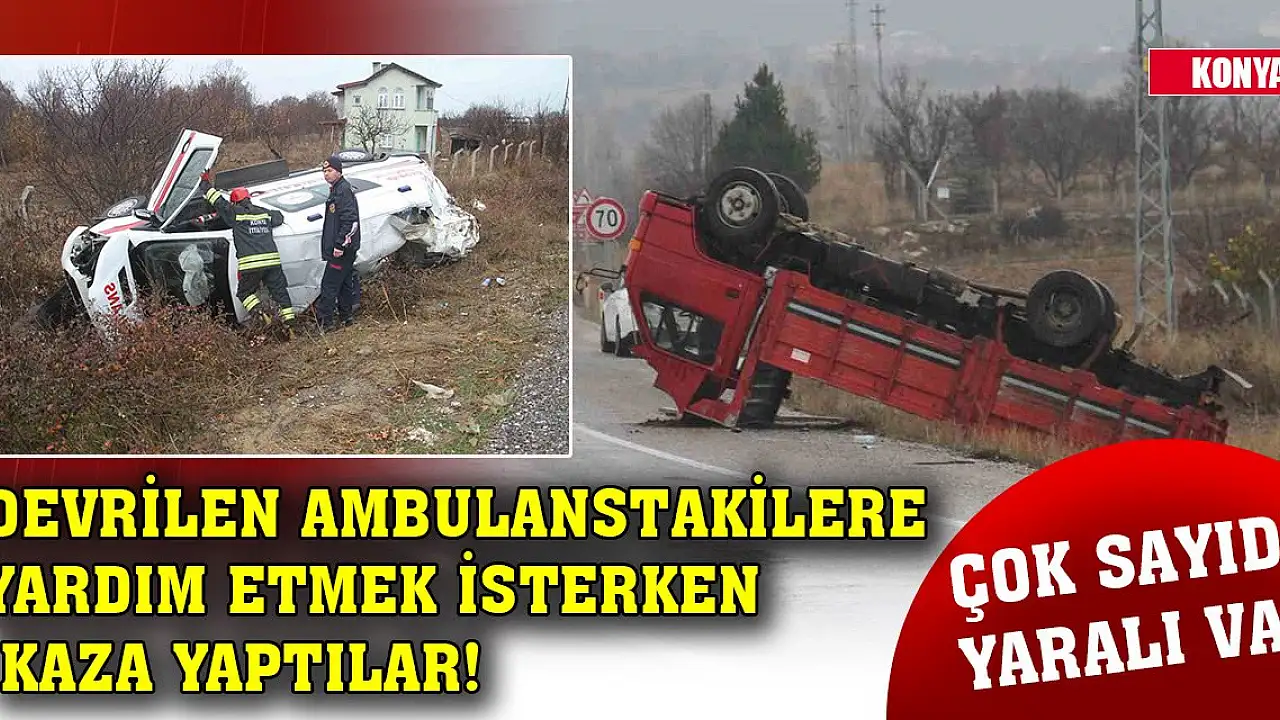 - Konya'da devrilen ambulanstakilere yardım etmek isterken kaza yaptılar! Çok sayıda yaralı var