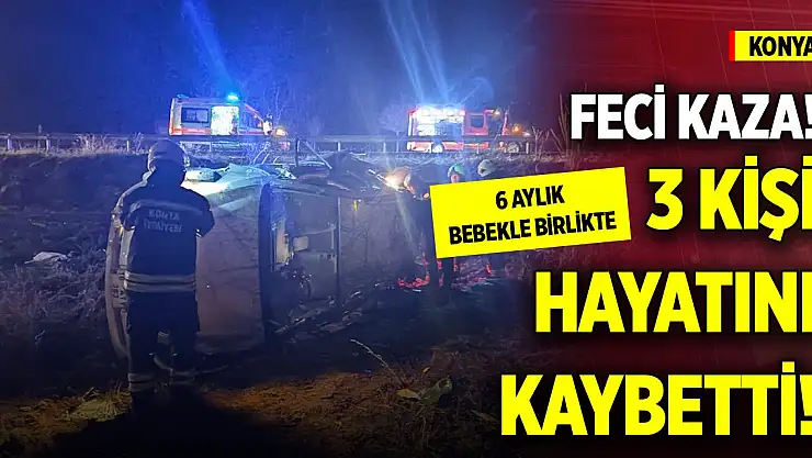 Konya'da otomobilin devrilmesi sonucu 3 kişi hayatını kaybetti, 3 kişi yaralandı.
