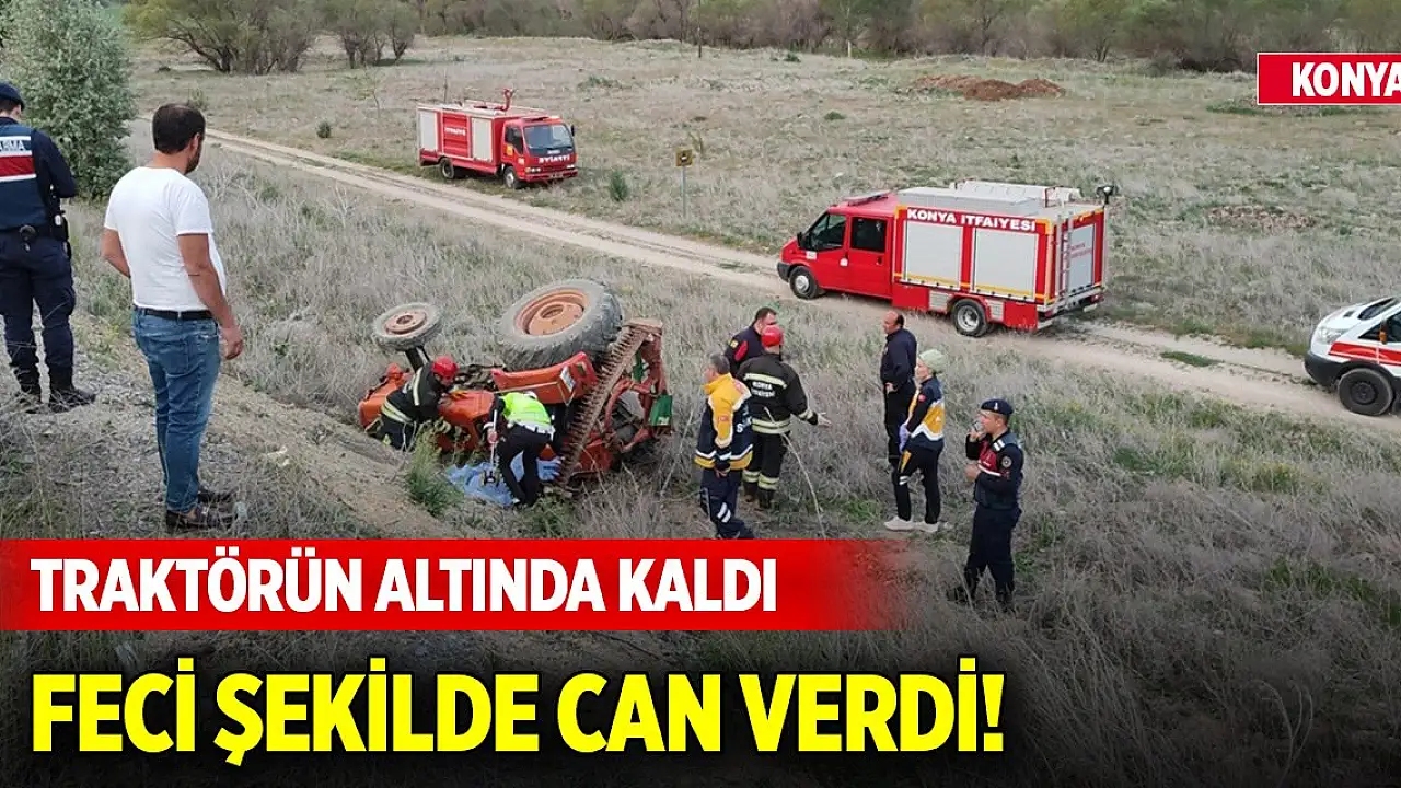 Konya'da devrilen traktörün altında kalan sürücü feci şekilde can verdi