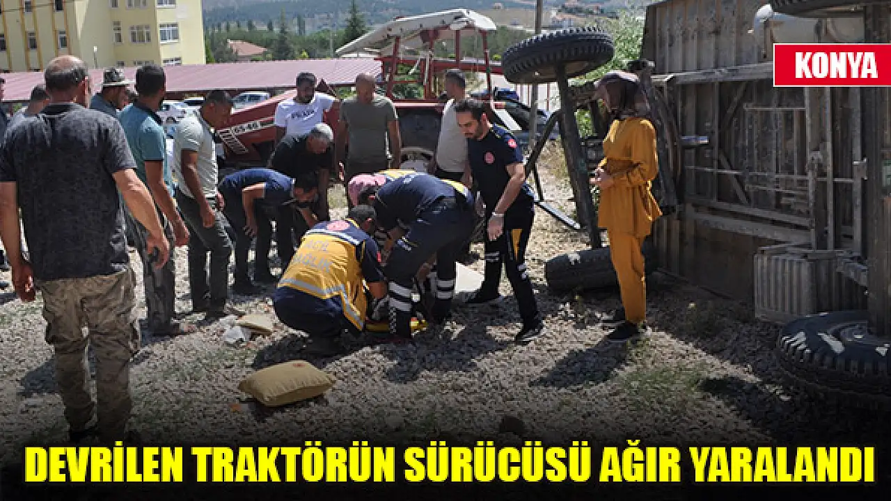 Konya'nın Halkapınar ilçesinde devrilen traktörün sürücüsü ağır yaralandı.