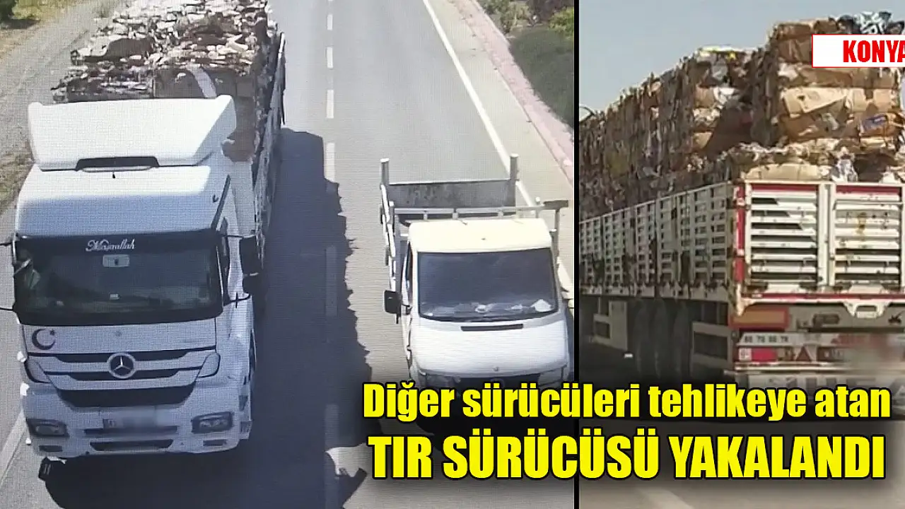 Konya'da diğer sürücüleri tehlikeye atan tır sürücüsü yakalandı