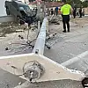 Konya'da direğe çarpan pikap bahçe duvarında asılı kaldı, sürücü yaralandı