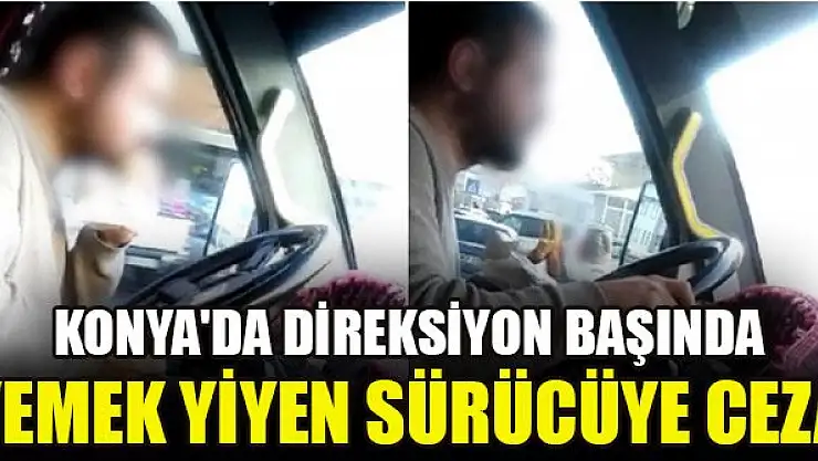Konya'da direksiyon başında yemek yiyerek araç kullanan minibüs sürücüsüne ceza kesildi.
