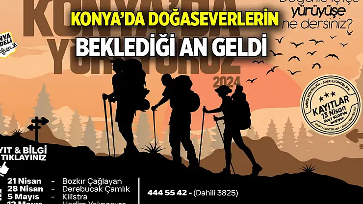 Konya Büyükşehir Belediyesi doğa tutkunları için düzenlediği “Konya’da Yürüyoruz” etkinliğinin ikincisi Derebucak Çamlık mevkiinde bu Pazar yapılacak. Programa katılmak isteyenler kontenjanları anında doldururken sonradan katılmak isteyenlerin hayali ise başka bahara kaldı. Oldukça yoğun ilgi gören doğa yürüyüşü etkinlikleri Kilistra ve Hadim Yalınçevre mevkiinde sürecek