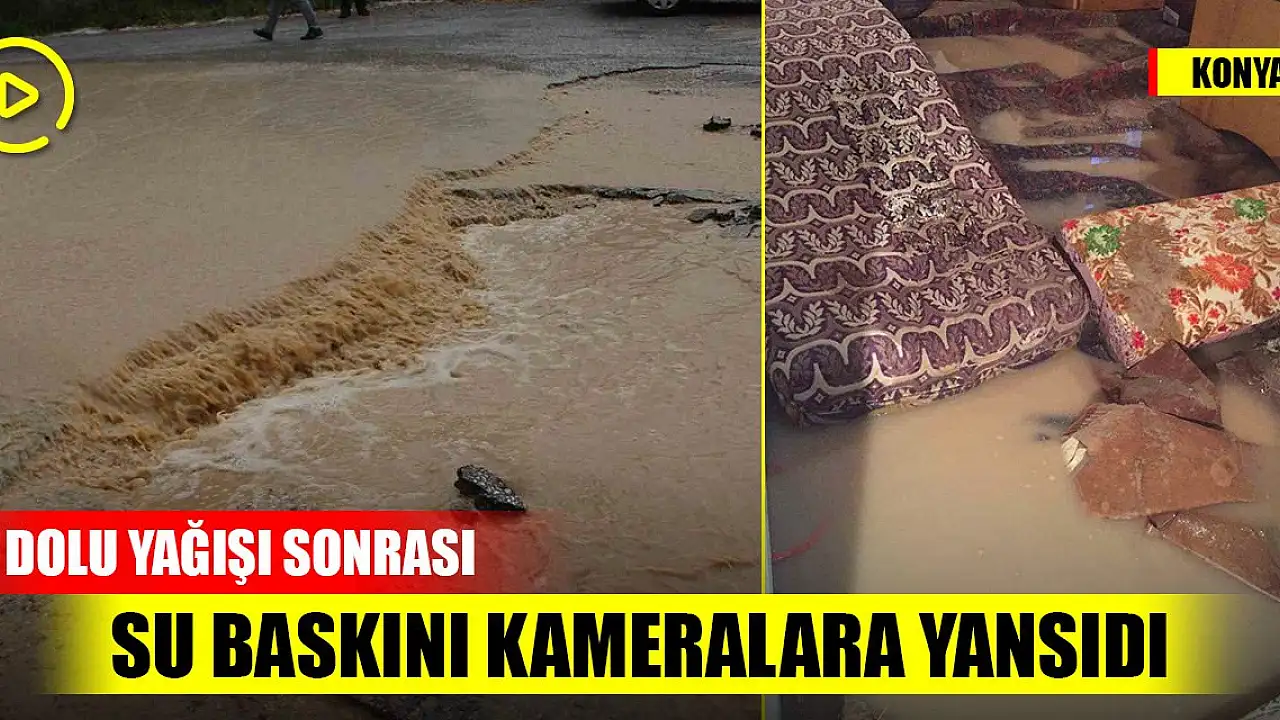 Konya'da dolu yağışı sonrası su baskını kameralara yansıdı