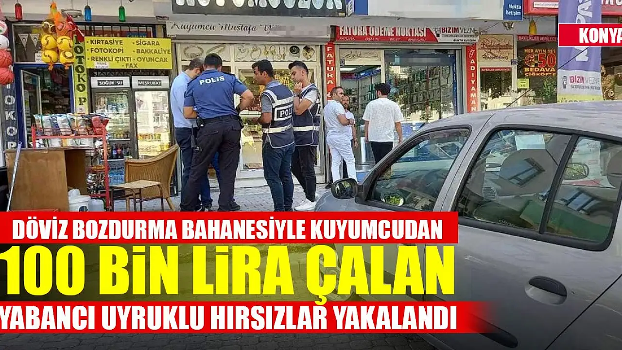 - Konya'da döviz bozdurma bahanesiyle kuyumcudan 100 bin lira çalan yabancı uyruklu hırsızlar yakalandı