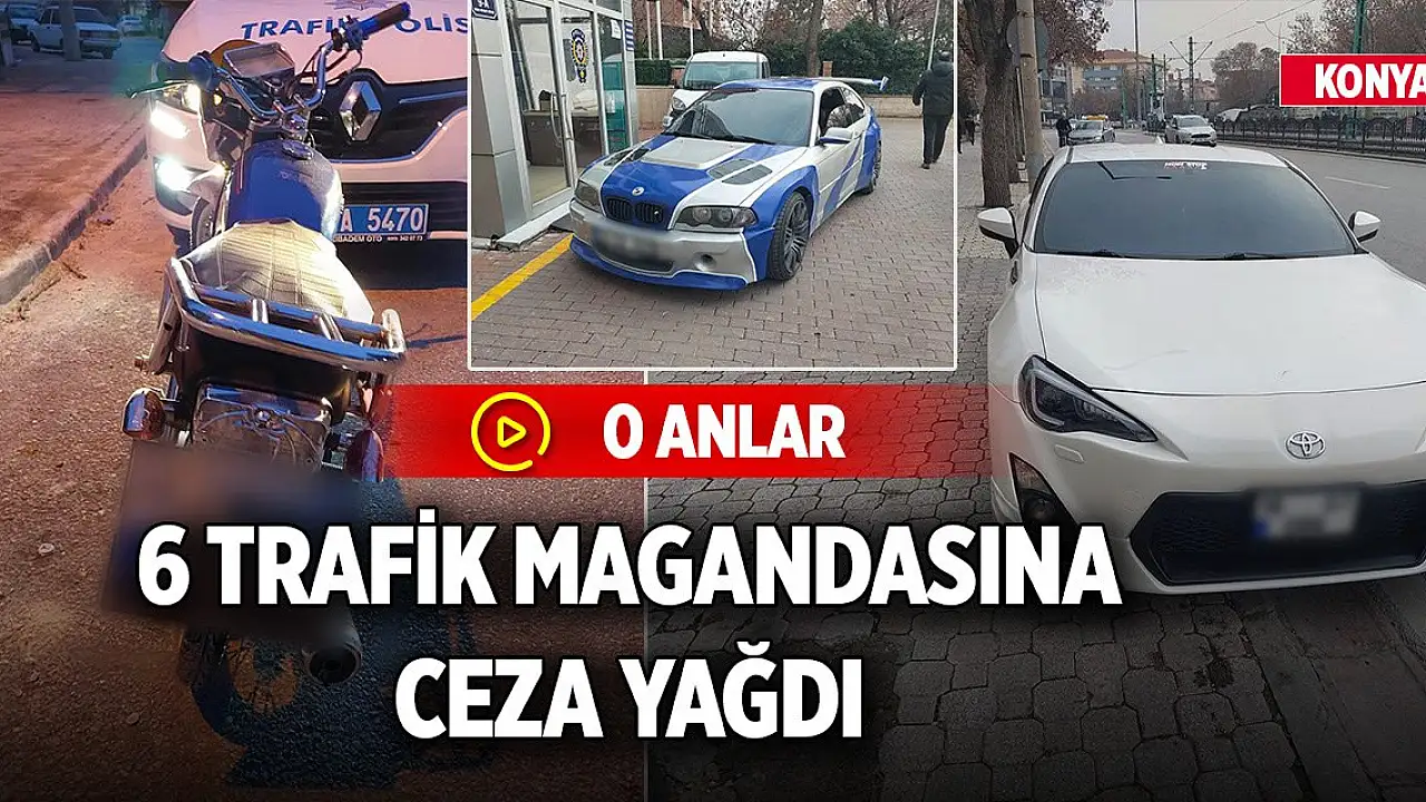 Konya'da trafiği tehlikeye atarak drift yapan magandaların görüntüleri sosyal medya hesaplarında paylaşıldı. Görüntüleri ihbar kabul ederek harekete geçen polis ekipleri altı sürücüye toplam 200 bin TL 'den fazla ceza yazarken ehliyetlerine de 2 ay süreyle el koydu.