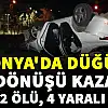 Konya'nın Ereğli ilçesinde düğünden dönenlerin bulunduğu otomobilin devrilmesi sonucu 2 kişi öldü, 4 kişi yaralandı.