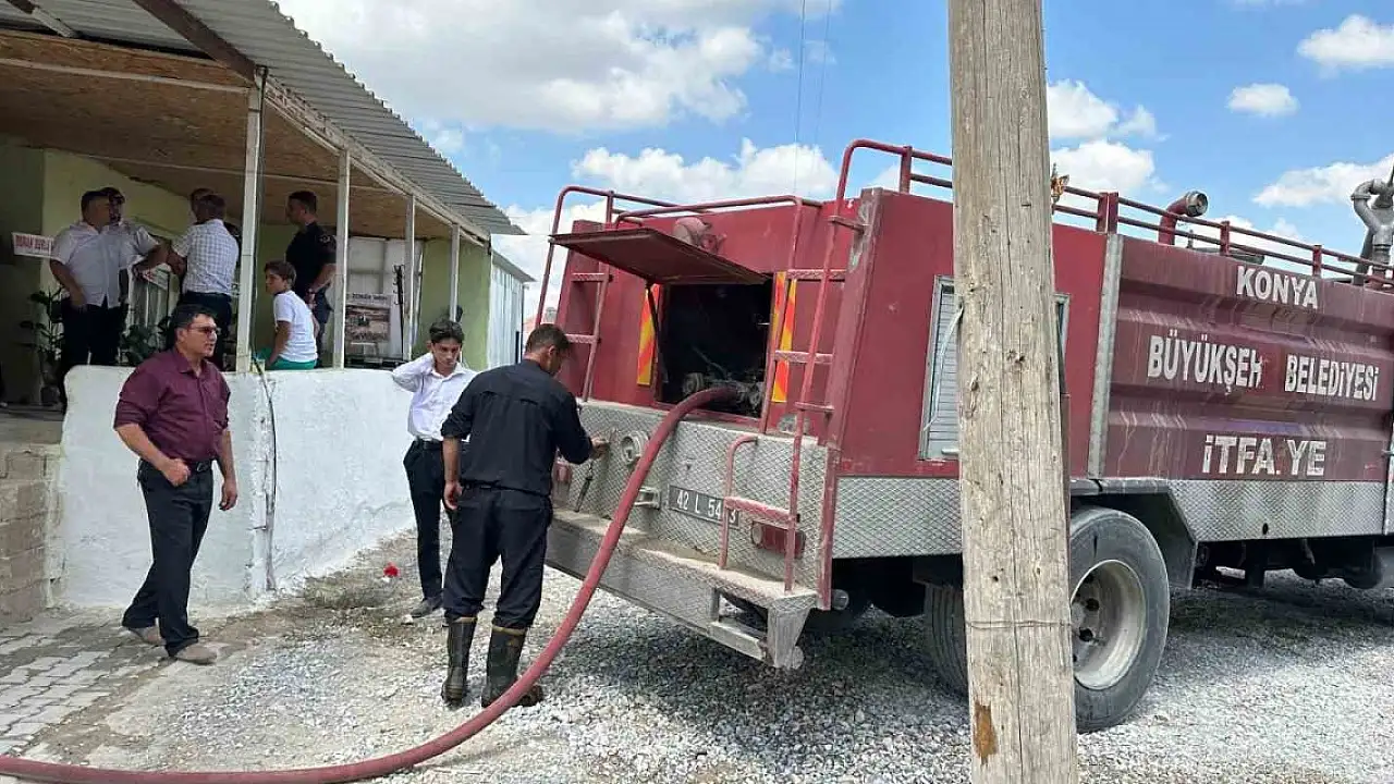 Konya'nın Karapınar ilçesinde bir düğünde yemek yenildiği sırada çıkan yangın, itfaiye ekipleri tarafından söndürüldü.