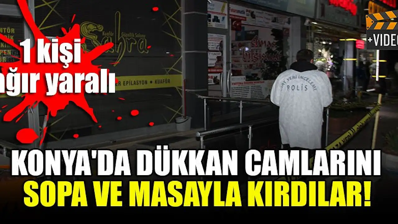 Konya'da dükkan camlarını sopa ve masayla kırdılar! 1 kişi ağır yaralı