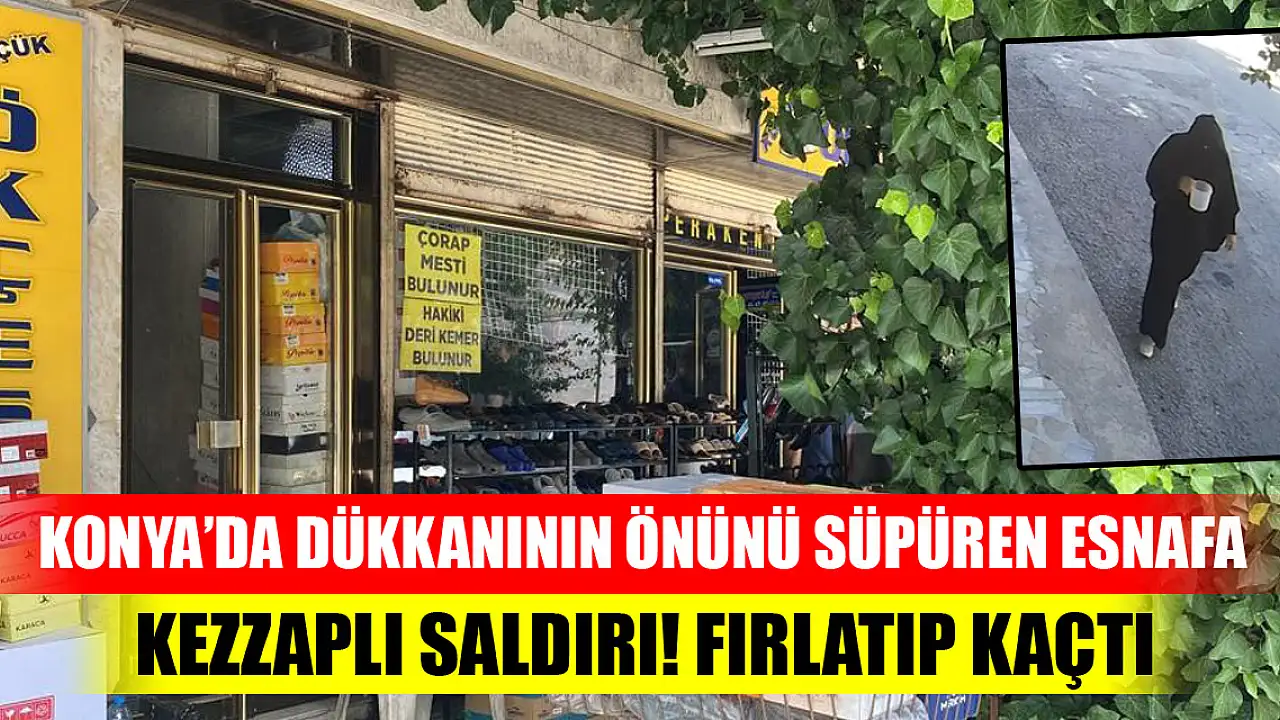Konya'da ayakkabı satışı yapan Selahattin Ökçesiz (40), iş yerinin önünü süpürdüğü sırada çarşaflı kişinin kimyasal maddeli saldırısına uğradı. Vücudunda 4'üncü derece yanık oluşan Ökçesiz tedaviye alınırken, saldırı güvenlik kamerasına yansıdı.