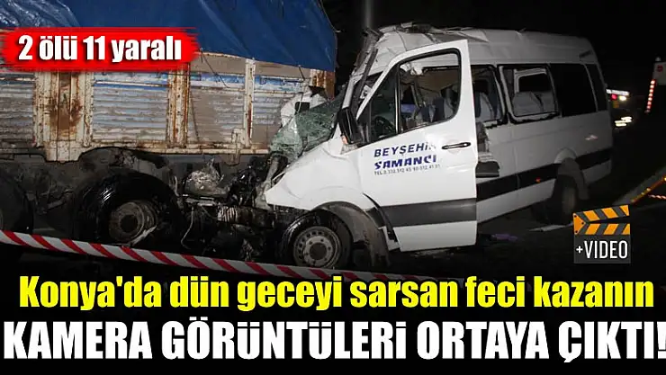 Konya'da yolcu minibüsünün kamyona arkadan çarpması sonucu meydana gelen trafik kazasında 2 kişi hayatını kaybetti, 11 yolcu da yaralandı. Kaza anı bir iş yerinin güvenlik kamerası tarafından saniye saniye kaydedildi.
