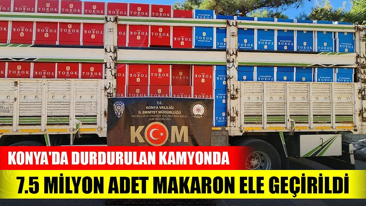 Konya'da Kom Şube Ekiplerince, şüphe üzerine durdurulan kamyonda 7.5 milyon adet gümrük kaçağı makaron ele geçirilirken 1 şüpheli gözaltına alındı.