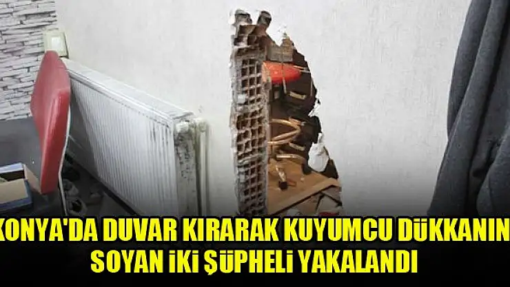 Konya'da bir kuaför dükkanının duvarını balyozla kırarak, bitişiğindeki kuyumcudan yaklaşık 200 bin lira değerindeki altını çalan iki şüpheli, polisin operasyonuyla gözaltına alındı.