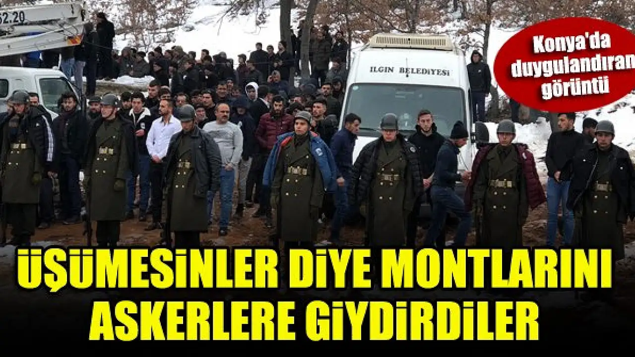 Konya'nın Ilgın ilçesinde dün defnedilen şehit piyade sözleşmeli er Fevzi Altınayak'ın cenaze töreninde, bir grup gencin tören mangasındaki askerlere "soğuktan üşümesinler" kendi montlarını giydirmesi herkesi duygulandırdı.