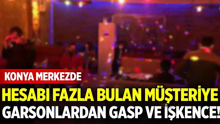 Selçuklu İlçesi Musalla Bağları Mahallesinde bulunan eğlence mekanına giden bir kişi hesabın yüksek gelmesi üzerine itiraz etti. Garsonlar sizi patronumuzla görüştürelim diyerek şahsı üst kata çıkarttı. Ardından 4 kişi birden şahsı darp ederek cebindeki 25 bin lirayı aldı ve şahsın hesabından kendi hesaplarına 20 bin lira para göndererek cep telefonunu kırdı. Bununla da yetinmeyen şüpheliler, şahsı darp etmeye devam ederek bir araca bindirip ATM’ye gittiler.
