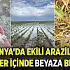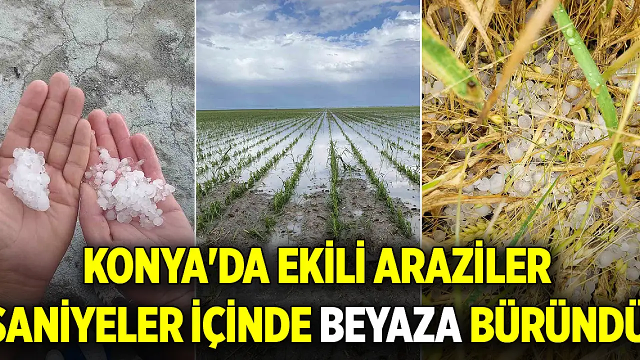 Konya'da ekili araziler saniyeler içinde beyaza büründü