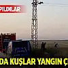 Kuşların düştüğü yerde bulunan arazide ise yangın çıktı. Çevredeki vatandaşların ihbarı üzerine olay yerine itfaiye ve jandarma ekipleri sevk edildi. İtfaiye ekipleri ile vatandaşların çabası ile yangın büyümeden kontrol altına alınarak söndürüldü.