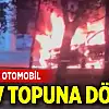 Konya'da elektrik direğine çarpan otomobil alev topuna döndü