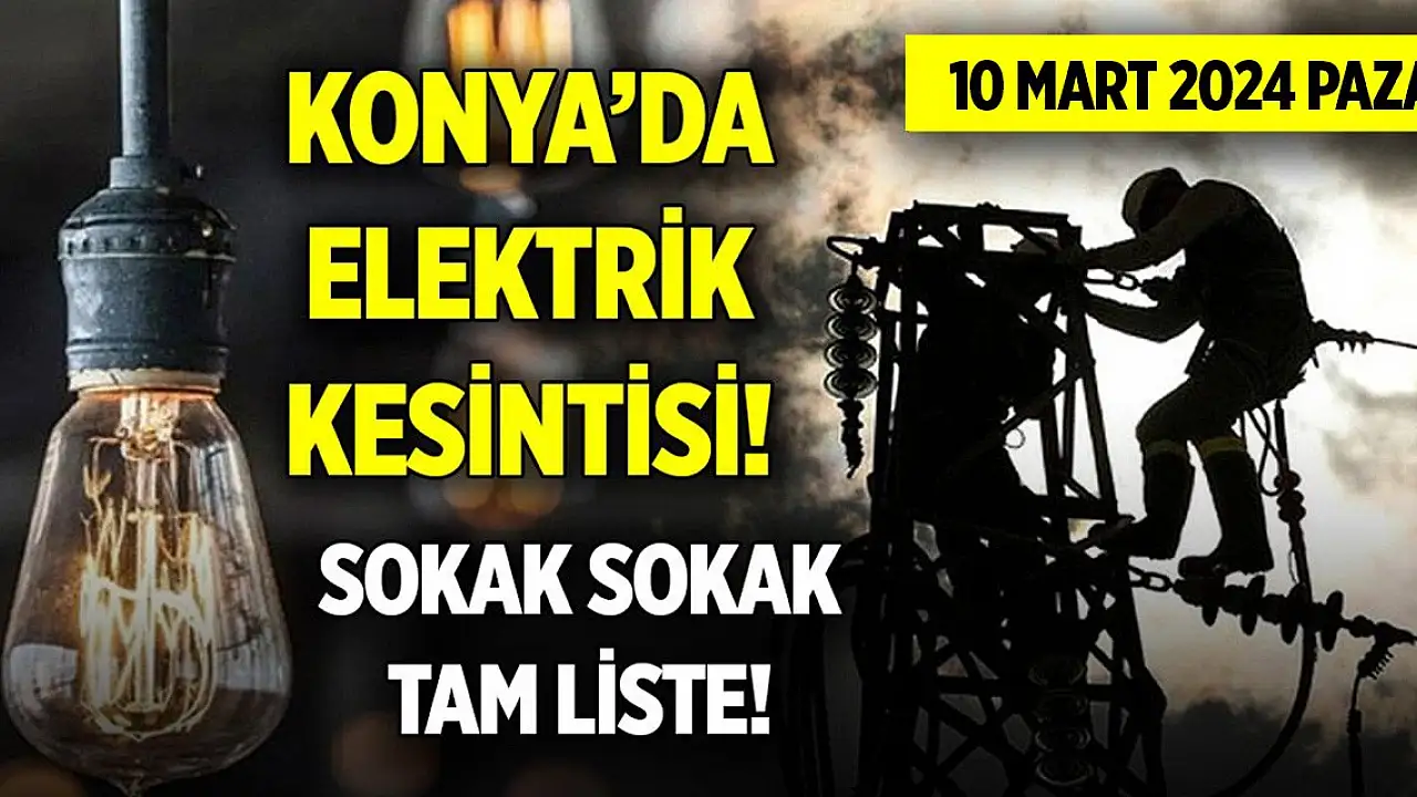 Konya'da yarın (10 Mart 2024 Pazar) bazı mahallelerde elektrik kesintisi yaşanacak. Peki, hangi mahallelerde elektrik olmayacak? İşte detaylar…
