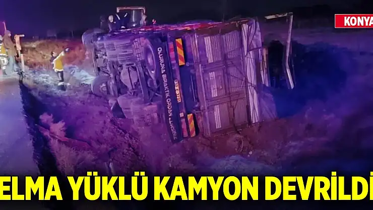 Konya'nın Karapınar ilçesinde elma yüklü kamyonun devrilmesi sonucu sürücü yaralandı.