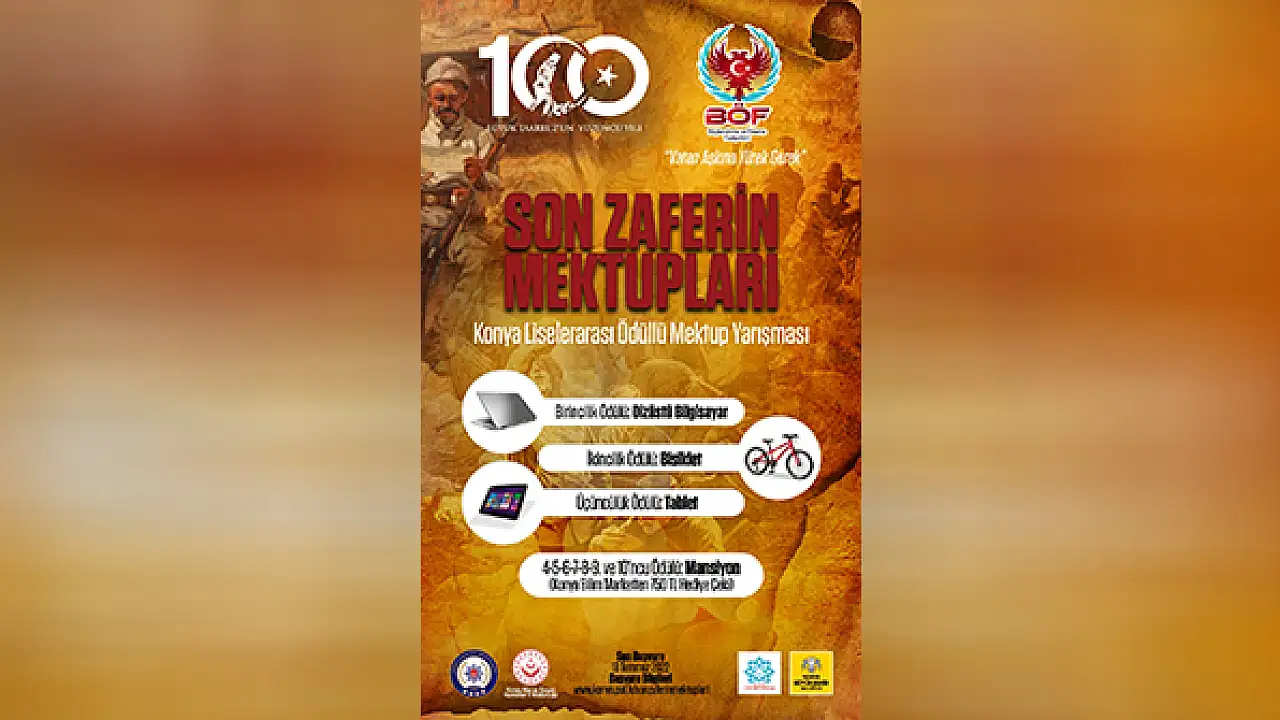 Konya İl Emniyet Müdürlüğü Terörle Mücadele Şube Müdürlüğü tarafından başlatılan 'Son Zaferin Mektupları' isimli proje ile Konya geneli lise öğrencileri arasında mektup yarışması düzenlendi. Son katılım tarihi 18 Temmuz 2022 olan yarışmada dereceye giren ilk 100 öğrenci ödüllendirilecek.
