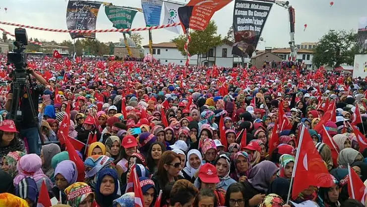 Konya'da heyecan dorukta. Cumhurbaşkanı Erdoğan'ın halka sesleneceği Kılıçarslan Meyda'nında kalabalık giderek artıyor.