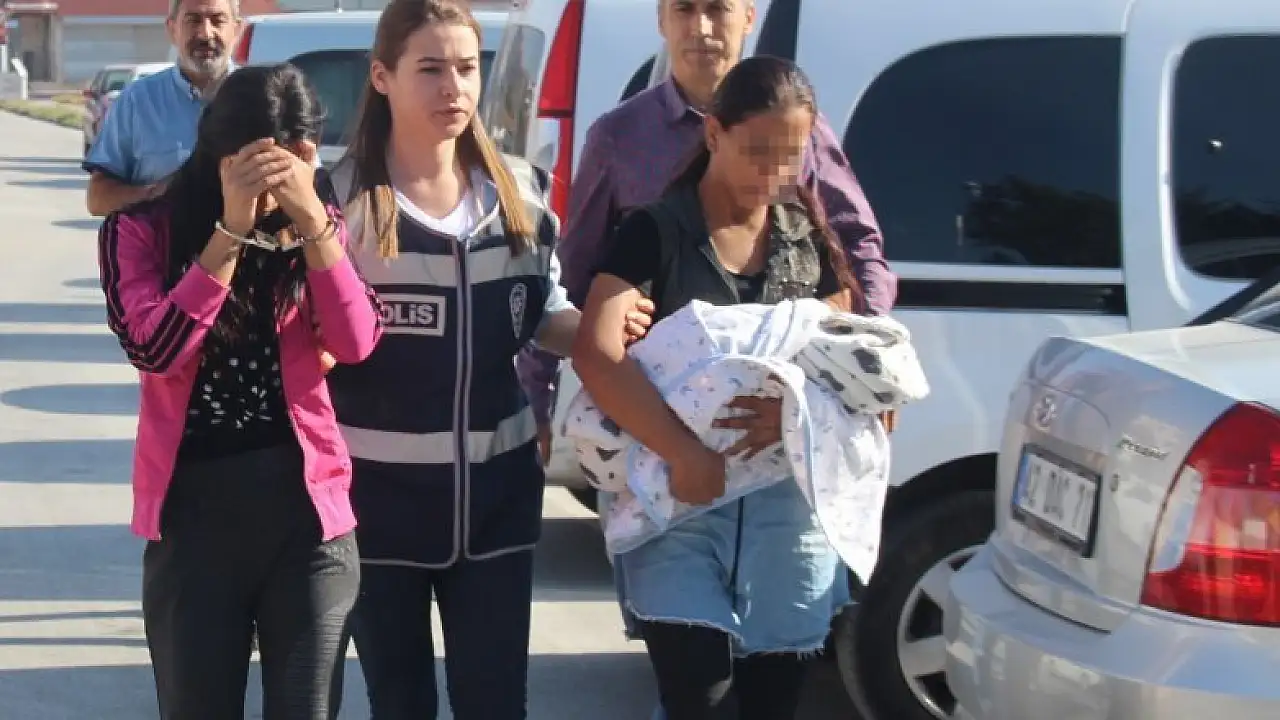 Olay, merkez Selçuklu ilçesi Mehmet Akif Mahallesi Hadimi Caddesi üzerinde bulunan bir binada meydana geldi. Edinilen bilgiye göre, cadde üzerindeki bir binaya girerek yanlarındaki aparat yardımıyla kapıyı açan 4 şüpheli kadın, girdikleri evde buldukları bir miktar parayı alarak evden ayrıldı. Bu sırada şüphelileri fark eden ev sahibi durumu polis ekiplerine bildirerek hırsızlık şüphelisi kadınların peşine takıldı. Olay yerine ulaşan Asayiş Şube Müdürlüğü Hırsızlık Büro Amirliği ekipleri, şüphelileri kısa sürede yakalayarak gözaltına aldı. Gözaltına alınan ve farklı suçlardan 13 kaydı olan 3 çocuk annesi Nazan G. (20) Sevim Y. (19) Z.E. (13) ve Z.E.’nin üzerinde arama yapan polis, evden çalınan bir miktar parayı buldu. Gözaltına alınan şüpheli Nazan G. kucağındaki çocuğuyla diğer şüphelilerle birlikte emniyete götürüldü. Gözaltına alınan şüphelilerin 30 Eylül Pazartesi günü hırsızlık suçundan adliyeye sevk edildiği ve tutuksuz yargılanmak üzere serbest kaldıkları öğrenildi.